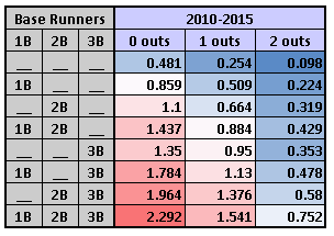 Tom Tango. Run Expectancy Matrix, 1950-2015