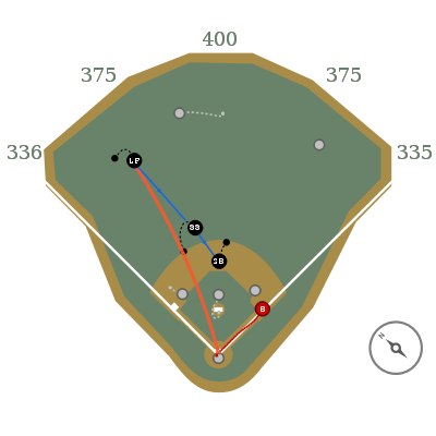 Savant also contains excellent visuals. Below are two examples. The first one shows the trajectory of a single by Mets first baseman Pete Alonso. The second shows the exit velocity and launch angle of a homer by Alonso. (More about those visuals later too.)